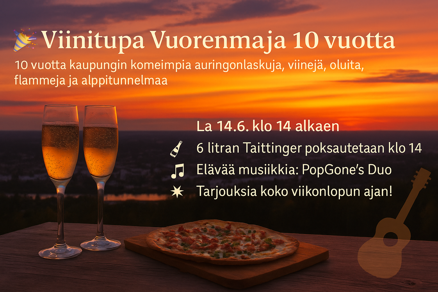 Hinta € 40.- muille kuin Viiniklubin kausikortin lunastaneille. Sisältää 7 kuohuviiniä n. 6cl kaadoilla ja 1 kokonaisen flammin per hlö