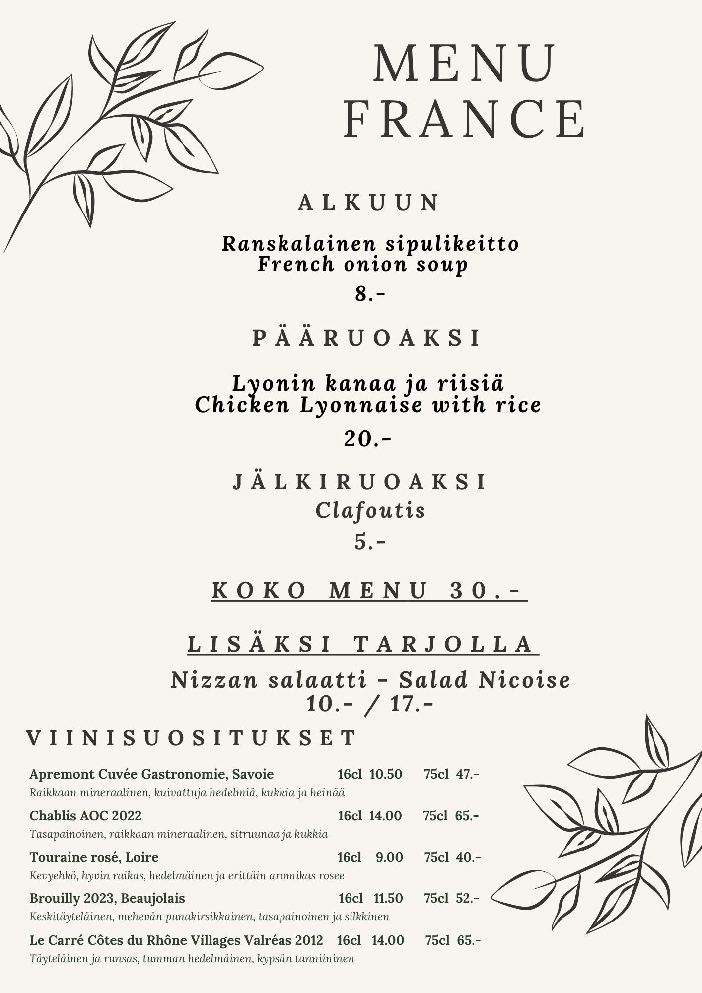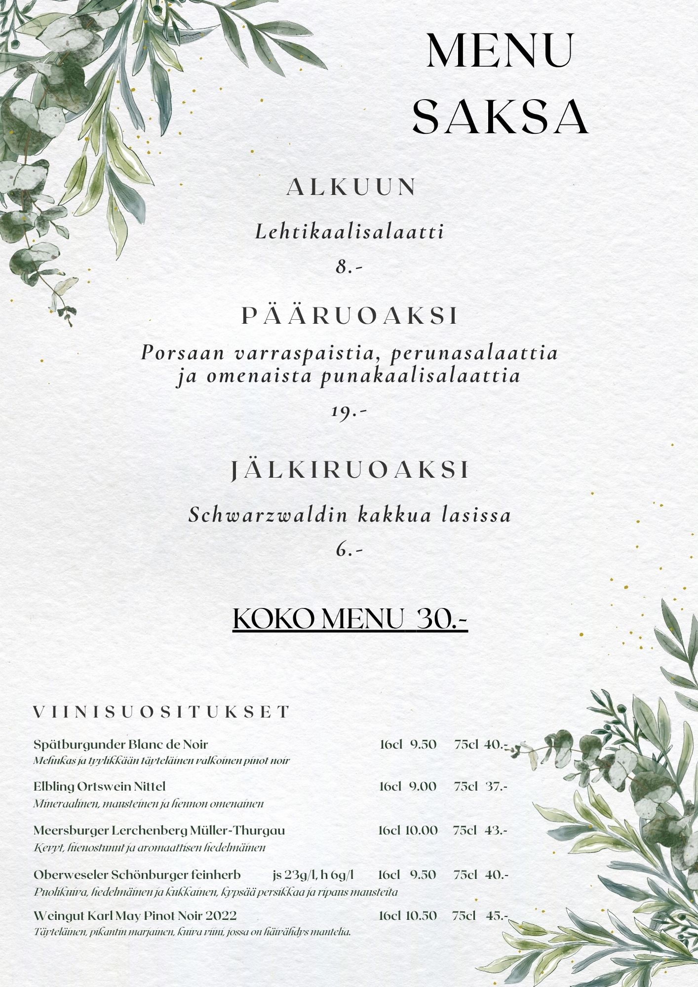 Pöytävarausta suositellaan lämpimästi: Pöytävaraukset, puh. 03-389 1616 tai Tämä sähköpostiosoite on suojattu spamboteilta. Tarvitset JavaScript-tuen nähdäksesi sen.