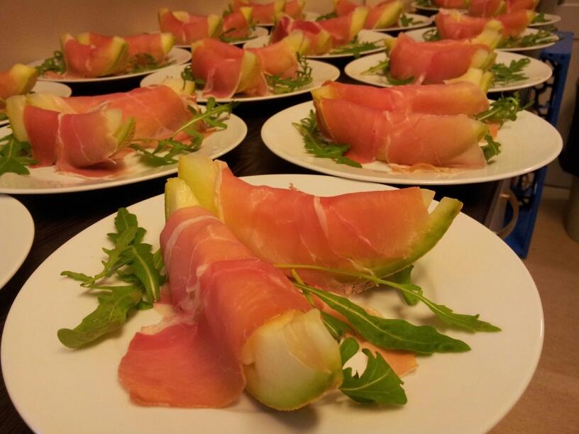 Meloniveneet ilmakuivatun kinkun kera